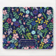 Blommigt med flytande löv, söt, stiliserade blommor, löv, bär, akorns och accent polka dots i nyanser av grönt, blått, rosa, lila och gult med accenter i orange, rött och brunt. Sätt på en mörk vid midnatt med blå bakgrund. Anpassa med ditt namn eller meddelande i rosa-teckensnitt på en mörk blått namnskylt som ramats in i rosa.