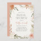Fira den brud som ska vara med den här eleganten blommigt inbjudningskort för möhippan, med vattenfärgade blommor i mjuk orange, rosa och elfenben.