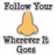 Ett humoristiskt typografiskt märke som visar hur man följer näsan vart man vill.