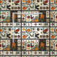 Den här väven visar en folkkonst quilt-inspirerad mönster med höst- och naturmotiv som arrangeras i raka lapptäcken. Pumpor, ek löv, blommigt grenar och fåglar - inklusive en korv och fasasantliknande fågel - förekommer överallt, bredvid stjärnor, diamanter och hjärtaccenter. Skapat i stil på applicé och broderi, mönster-användorna är varma örhänta toner av orange, bruna, röda, grönt och grädde, vilket framkallar fallande. Perfekt för jordbruksgrödor, primitiv americana stil, säsongshantverkare för skörd och rustiska folkkonstentusiaster.