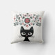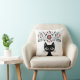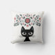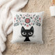 Folk Art Black Cat and Flowers Kudde