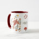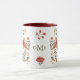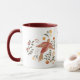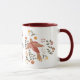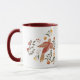 Varje sida av detta unika mugg har en beundransvärd folkkonst av en duva omgiven av blommigt, löv och berry bilder. Färg som används är rostigt rött, grått grönt och guld. Bilden skrivs ut på två sidor, med fält för ditt tre brev monogram mitt emellan.
