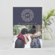 Chic och glad formgivning "JOY" omringad av en folkkonsmedaljon-andedräkt i elfenben, kranbär och sage-grönt, på en djup midnattblå bakgrund för en vacker kontrast. Lägg till foto för din favoritfamilj och anpassa dig till din familj namn och året. Om du vill justera avståndet mellan hälsning, namn och år användor du funktionen Anpassa för att flytta inslag. Ett unikt val av elegant för dina semesterhälsningar!