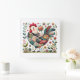 Folk Patchwork Rooster with Floral Accents Fyrkantig Klocka