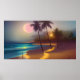 Folkets Måne och Beach, måndagligt hav handflatan Poster