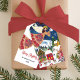 Backa din presenter i stil för dina vänner och din familj den här julhelgen. En glad julillustration med en julängel av fred på jorden med en vit duva. Hon flyger över en vinterby i ett bergsområde med färgader, Julgranar och djur som rinner runt i snö, snöflingor snurrar ner. På baksidan kan du skriva ett personligt meddelande och anpassningsbarnas personlig namn. Handmålade originalteckningar av Caroline Bonne Müller