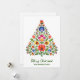 Brevkortets framsida har ett lysande Julgran som når himlar med grenar i en sympfoni av vibrerande färg. Varje gren är noggrant dekorerat med svårskurna pappra prydnadsföremål, utställningsscener från omhuldade folkloristiska berättelser. Träd står högt mot en bakgrund av djupa blåsor och lila, och framkallar den mystiska alluren från natten himlar. En familj av vårdare i traditionell Lowicz attire serverar säsongen med glädjande musik.