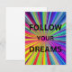 Follow your dreams flat card is a perfect colorful card for someone who is following there dreams or have added a little special something to the family. Great gift idea to give to your boyfriend, girlfriend , best friend, relative, mom, dad, or family. Perfect gift idea to give to someone graduating from school or college or university. Or to someone who has been promoted to a different job or work title.