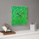 Skrivs ut med ljusa gröntar och blå fyrkanter, med ljusa gulter och svarta spår. En effekt som påminner om bra avståndsbrickor på en bakgrundsbild. Gröntens kvadrat konverteras från ljust grönt till en blåaktig nyans. På den gulaktiga bakgrunden kan fyrkanterna orsaka den illusion de flyter, beroende på läget för tittar och omgivande ljus.