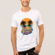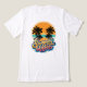 This vibrant and energetic graphic design features the phrase "Summer Vibes" in a dynamic, multi-colored 3D script. The typography is rich with warm yellow, orange, and cool teal tones, accented by playful water droplets and splashes. Above the text, a circular sunset badge showcases tropical palm tree silhouettes against a golden sky and calm ocean. This design is specifically crafted for Men's Tri-Blend Shirts, offering a soft, vintage aesthetic that perfectly captures the essence of a tropical vacation or a relaxed beach day.