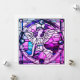 Det här söta julkortet har en ängel i glasmålningstil. Färgrika nyanser i lila, ljuslila och rosa har använts. Den perfekta säsongsrelaterade hälsningen för familj, vänner, arbetskamrater, grannar och kyrkliga / andliga vänner. Innehåller A.I.