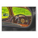 Bilden av en klassisk bils insida togs genom rullningsfönstret bakifrån.