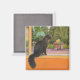 Tabby katt sitter inne på en fönsterkvarn som tittar på gården.
