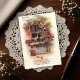 • Överförd från en familjesamling som startades av min farfars far i England, fångar denna digitala illustration den tidlösa skönheten hos ett sekelskiftes vykort. Detta konstverk har röda rosor och löv som klättrar runt ett gitterfönster, en fönsterlåda med färgglada blommor, två små fåglar och en glad födelsedagsgratulation.