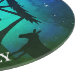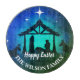 Nativitetscen i enkelt blått, grönt och svart med vit text som du kan anpassa och vita stjärnor efter. Runt glashuggbord.