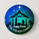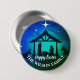 Nativitetscen i enkelt blått, grönt och svart med vit text som du kan anpassa och vita stjärnor efter. Rundbricka.