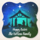 Nativitetscen i enkelt blått, grönt och svart med vit text som du kan anpassa och vita stjärnor efter. Papper underlägg.