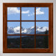 Faux-fönstret som förbiser ett Colorado-berg med snö.