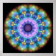 Även om ett kalejdoskop är ett mönster som ständigt förändras av former och färg, är detta en digital stillastående version av detta. Intrikera mönster som upprepas i ett cirkulärt ram. Detta kalejdoskop visar mönster i lilaxblått och lila, det glödande inslagen får det att se ut som ett ljus bakom ett fläckglasfönster