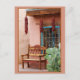 Den här quintessentiella gamla staden Albuquerque, New mexico, scenen har hängda röda pepparristas, adobe-väggar, en kardad färgad träbänk, en prickly pärar cactus, brick patio, tin tak och ett turkofönster ram.