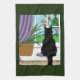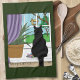 Fönstret Tittar ut svart katt Kökshandduk