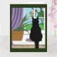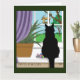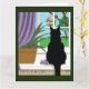 Fönstret Tittar ut svart katt Kort