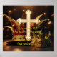 Stor guldklädd kor med jesterhatt och guldfärgad krona med typografi.