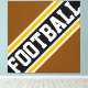 Den här sportiska designen innehåller atletisk FOOTBALL-text inuti markerad diagonal svart, vit och guldfärgad tävla rand för gult mot brun bakgrund. Det första och sista breven i texten springa på kanten som är utformat med en dynamisk banderoffekt. Färg och text i den här utformningen kan vara personlig.