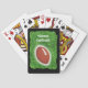 A deck of playing cards designed for football fans or players. Zazzle automatically labels them poker cards but, of course, they are good for any card game. The design features a football highlighted in white on a green grass background. Distinctive, black, irregular border. Personalize it with a name. The name is easily changed by using the template. Selecting “Personalize this design” offers you several edit options to easily change the text (wording, plus type font, color, size, position) and to edit the design elements. You may also want to scroll down to the section “Transfer design to a product” for a few suggestions about other items this design can be used on.