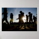Ett foto som visar fotbollsspelare som går till fält före matchen mot bakgrund av en fallande solnedgång.