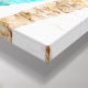 Är här en vattenfärg av en abstrakt serie som jag målade på silkespapperpapper med phthaloblått, aquamarineturkosblått, indigoblå blått såväl som det guld- och regnbågsskimrande medlet målar för shimmer. Papperet tillfogar ett underbart dimensionerar av underbar struktur. Utskrivavet på kanfas, ger silkespapperpappersstrukturen det ett rikare kvalitets- med ökat djup och nyans. Denna målning är delen av en underbar serie av modern konst som betonar ett utrymme, för hotell, kontor, affärsinställningar, ett galleri eller en köpcentrum, såväl som hem- vardagsrum, studien eller sovrummet. Original målades på arkivsilkespapper med vattenfärg och gouache.