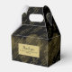 Säg "Grattis på födelsedagen" eller "Lycklig-årsdagen" på en presentlåda med ditt anpassningsbar-meddelande mönster. Bakgrunden är ett övertryck av guld:s tre (3) linjer med diagonala rader över svart. Anpassa detta svarta och guld-meddelande till mönster med upp till 3 linjer text med 28 tecken vardera. (tecken omfattar: brev, siffror, blanksteg och interpunktion). På den främre skylten finns det plats och en mall för att lägga till ett "Tack"-meddelande. Den här designen är roligt för alla åldrar och för tillfällen, privatpersoner eller professioneller. All text kan ändras med textmallarna för att matcha vilket firande som helst. Gör det till ditt eget!