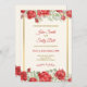 Fira kärlek med vår eleganta designade bröllopsinbjudan, som innehåller vackert röd ros och känslig grönsak. Den mjuka krämbakgrunden står vackert i kontrast till de vibrerande blommigtarna, medan det gyllene ram tillför en aning sofistikering. Perfekt för ett klassiskt och romantiskt bröllop, den här inbjudan anger tonen för en minnesvärd dag fylld med kärlek och glädje.