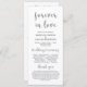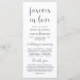 Modern Bröllop Ceremonisekort i 4 x 9 tum (lång) kort. Det är designat med rullans accenttecken som kan vara personlig med anpassningsbar/ personlig för din bröllopsfest, information om ceremonier, minnesanteckningar och tack för ditt budskap. Om du är tittar för andra programkortstyper och -storlekar, sök igenom vårt matchande programkortinsamlingsavsnitt.