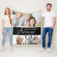 Personligens minnesfilt för fotokollage. Perfekten betalar en hyllning till din älskade. Design innehåller typografiska skript ''för alltid i våra hjärtan', 3 foton och ett namn.