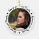 Ät din kära med en anpassningsbar fotominnesprydnad. Denna unika minnesstund är den perfekt gåva som du själv, familj eller vänner får för att betala hyllningen till din kära. Vi hoppas att ert minnesmärke kommer att ge er fred, glädje och lycklig minnen. Citat "För alltid i våra hjärtan". Anpassa med favoritfoton, namn, data eller år. . Ornament är dubbla, du kan göra 2 favoritfoton, en på vardera sidan. Anpassa namn på framsidan och data på baksidan. COPYRIGHT © 2020 Judy Burrows, Black Hund Art - Med alla Höger reserverade