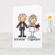 En stick figur-brid och -stam och text som lyder "För samman tillsammans" på bröllop T-shirts, mugg, kort, klistermärken, tote bags, magneter, portvin, frimärke, munstycken, hoar och andra kläder och presenter för brudar och brudgummar, perfekt för nylingarna till bära på deras smekmånad och veckorna efter stordagen!