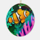 Original- konstmålning av en färgrik Percula clown- eller Anenome fisk av konstnären Carolyn McFann av studion för två spinnakatter som skrivs ut på en kvalitets- helgdagprydnad för tropisk akvarium- och korallrevfisk, fläktar.
