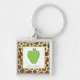 En keychain som presenterar en bakgrund av girafftrycket. Grön äppleillustrationinsida kvadrerar på centrerar. Personifiera med ditt namn.