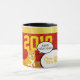 Anpassademuggen med en älskvärd hund design (Shiba Inu i brunt och vit) med tal bubblar för din text (här gott nytt år) + Önskemål i vietnames (text avbildar), på rött tyg avbildar och guld- texturerad bakgrund. Du kan lätt tillfoga och ändra text + bakgrundsfärg och den vietnamesiska hälsningen för borttagnings avbildar, genom att klicka skräddarsy, knäppas. Perfekt för det vietnamesiska nya året av hunden 2018 eller födelsedagen (folk bördigt hundår).