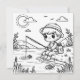 En söt liten pojke som fiskar i sjö på en campingfärgsida för resa. Färg mitt kort för barn!