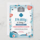 Akut blå inbjudan till barn i party. Denna roligt kommer inbjudan att vara perfekt för inbjudan all liten framtida läkare till detta recept på roligt party.