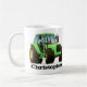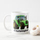 Tillfoga ditt namn till detta muggen för kaffe för traktoren för coolaanpassningsbarnamn. En underbar stor grön traktor med stor gult rullar från en målning av Paul Stickland för Truckstore på Zazzle.