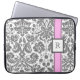 Monogrammed fodral för bärbar datoranpassade med eleganta kolgrått, ljus bebisrosa- och vitklassiker och damastast mönster för chicvintage. Personifiera detta fodral med ditt eget märka med sina initialer för att skapa ett riktigt unikt fodral. Kontakta oss för att be en färgändring.