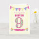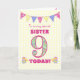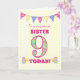 Ett söt 9:e födelsedagskort för din syster, med polka punktbuntning, priroblommor och nummer fyllda med en primrose mönster, allt på en blek gult check gingham-bakgrund. Det främsta omslaget är: "Till en mycket speciell SISTER 9 I DAG!" Det inre meddelandet är bara ett förslag och du kan enkelt anpassa det eller ta bort det om du vill.