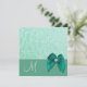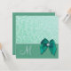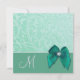 Ett elegantt mönster för brocade för mintgröntfaux dekorerar övrethirden av denna nätt bröllopinbjudan. Heltäckande som matchar gröntgrund, rymmer din monogram i blek text. En ljus kricka grönt sompilbågen med en fauxpärla centrerar, avslutar bekläda. Baksidaen av inbjudan matchar grönt med din skräddarsy text. *Pleasen noterar - avbilda skrivs ut på inbjudan, som innehåller ingen faktisk tyg, band eller pärla substance.*
