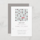Moderiktiga dammiga blått, grått och kritiserar färgpalettsärdrag ett samtidat raster av hjärtor som omger de två speciella röda hjärtorna som föreställer bruden och brudgummen. En modern bröllopdesign, med en samtida blandning av formaterar, och typografi, utforma är enkel, yet en klockas slag.