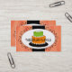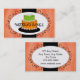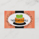 Design för bröllopstårtabagerivisitkortar vid Elke Clarke ©. Grön blom- bröllopstårta för orange och för limefrukt på en orange bakgrund med svart brytningar.