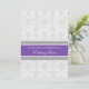 Inbjudningar för förnyande för elegant bröllopvow i mörkt blom- damastast mönster för lilor, för grå färg och för vit med fullständigt anpassadetext att inkludera din vowförnyandeceremoni specificerar.