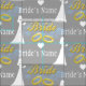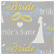 Förtjusande brölloptematyg som firar vigselceremonin av det älskvärt, kopplar ihop. Monogrammed med devara namnen eller någon speciell text. Musikband för vigselring för designsärdrag fördunklar eleganta guld- med blått bakgrund, en vitbröllopsklänning och hjärta och att fira bruden och brudgummen. Skapa beställnings- möhippa- eller bacheloretteparty favors genom att använda detta roliga brudens sidatema.